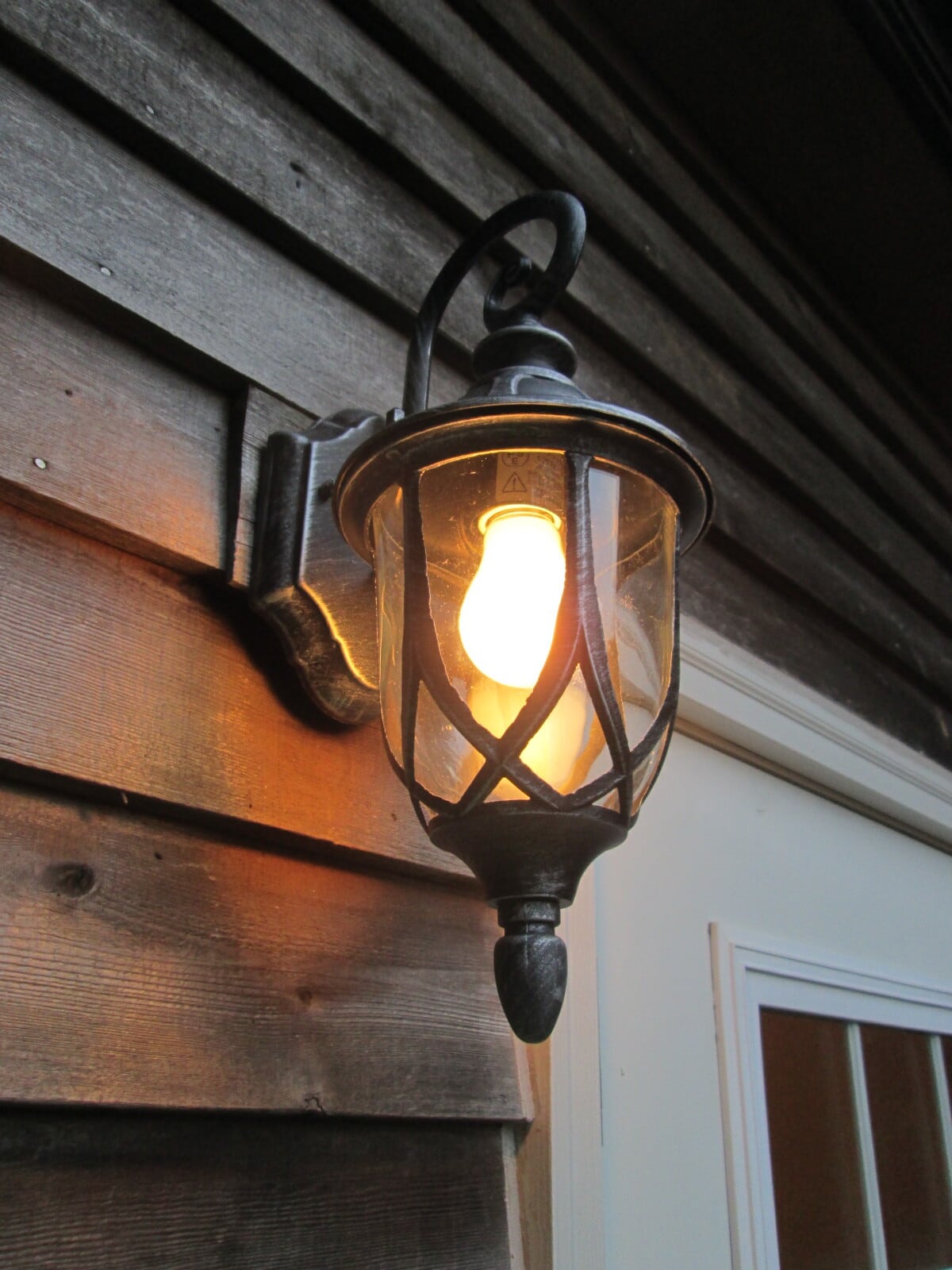 ・屋外対応タイプの照明器具を壁面に直付けする際に必要となるガスケット (ゴムパッキン) は含まれておりませんので、雨風が掛かる箇所に設置する場合は主にコーキング材を使用し照明器具の土台部と壁面との隙間を埋めて下さい。その際、土台部の上部と側面へのコーキング施工のみとし、土台部下部を塞ぐことのない様にしてください。
